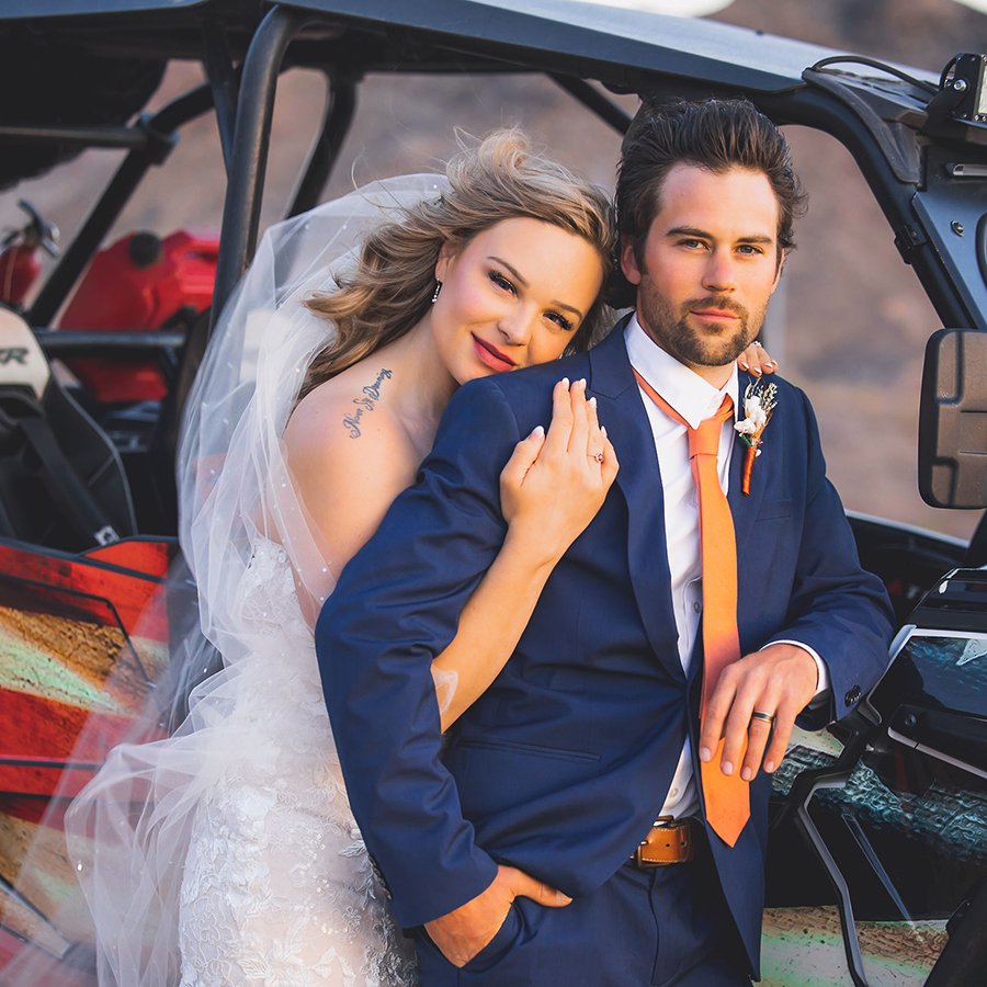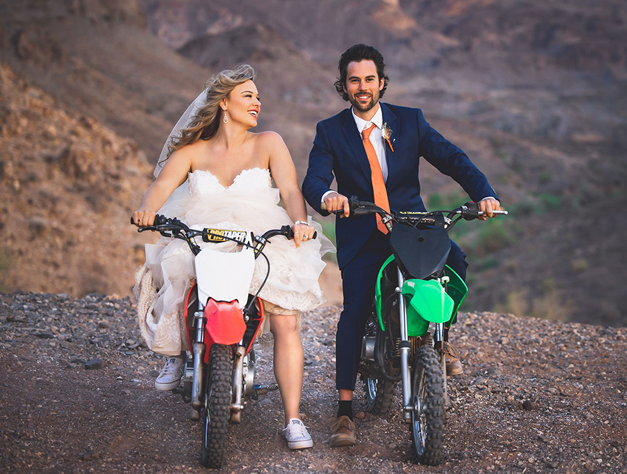 4. What piece of advice would you give other couples planning their big day? Make sure you don’t fall into caring too much what other people will think. Make it as comfortable and accommodating as possible for your guests. But make sure it screams you! We got married in the middle of the desert, we drove our razor and dirt bikes in our wedding attire. We catered our guests with street tacos and a margarita machine. I still hear from people about how fun, comfortable, and relaxing our wedding was.
