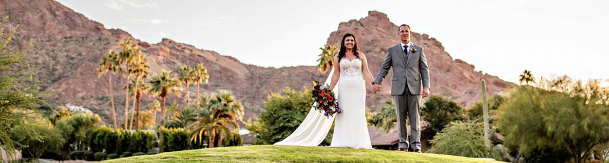 Living is Scottsdale, we really wanted to have a destination-like wedding since we had so many family members and friends coming from out of town and Mountain Shadows Resort was THE PERFECT setting. From the impressive views of Camelback Mountain, a pristine golf course and sparkling pool all set within a modern design, we couldn't have asked for a more beautiful location to host our wedding. Zeina Reniboldt, Catering Sales Manager, was amazing to work with and everything was just so easy to pull together. We found their wedding packages were very inclusive based on all that we needed and the food was absolutely delicious. A number of our guests stayed on property for the weekend and raved about the resort, staff and service. There is no question why Mountain Shadows is rated one of the best resorts in the Valley and now being recognized across the world. We just loved it and look forward to returning to celebrate many anniversaries to come!