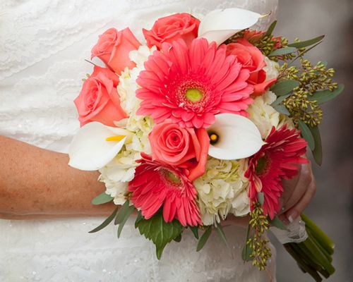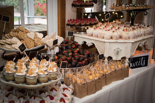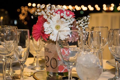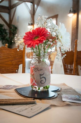 3. Describe the theme and color scheme of your wedding, and any favorite details (ceremony and/or reception) you included in your special day. Our wedding colors were coral and grey. Our theme was simple and laidback, country/rustic. We (Mark’s daughters, my bonus daughters and several friends) made the center pieces and the flower arrangements that were four Gerber Daisies with baby breath. Our favorite detail about the wedding was family. We both come from large families, we are both one of seven children. Having our family be part of the ceremony plus being in attendance was the best part of the day. Another fun detail that we incorporated into the wedding was a Chicago Cubs theme and cake topper. In addition to a fabulous dessert table put together by great friends.