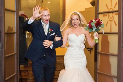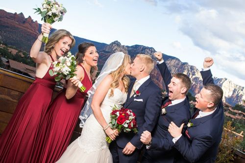 4. Describe the theme and color scheme of your wedding, and any favorite details (ceremony and/or reception) you included in your special day. We got married in the fall, and Sedona offers great red/orange scenery as a back drop. We chose navy blue and burgundy/deep reds as accent colors for the wedding party and theme. It added just enough contrast and pop to compliment the natural beauty around us. We also went for a clean and classic look. One of our favorite details of the ceremony, was that we had one of our best friends officiate the wedding, which made it more special and personal to us.