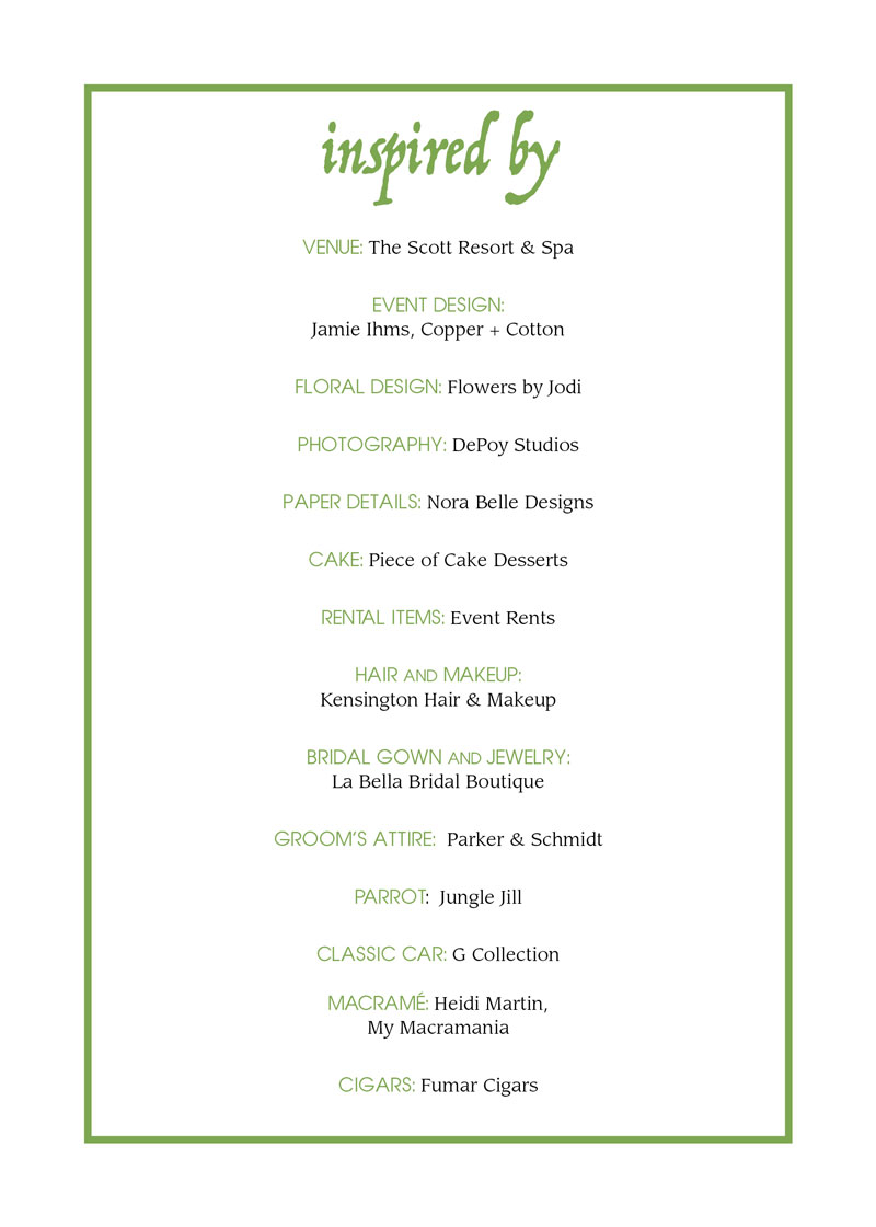 The Scott’s culinary team utilizes local ingredients prepared with international flair. All wedding menus include a complimentary champagne toast, a customized tiered wedding cake and coffee and tea service.